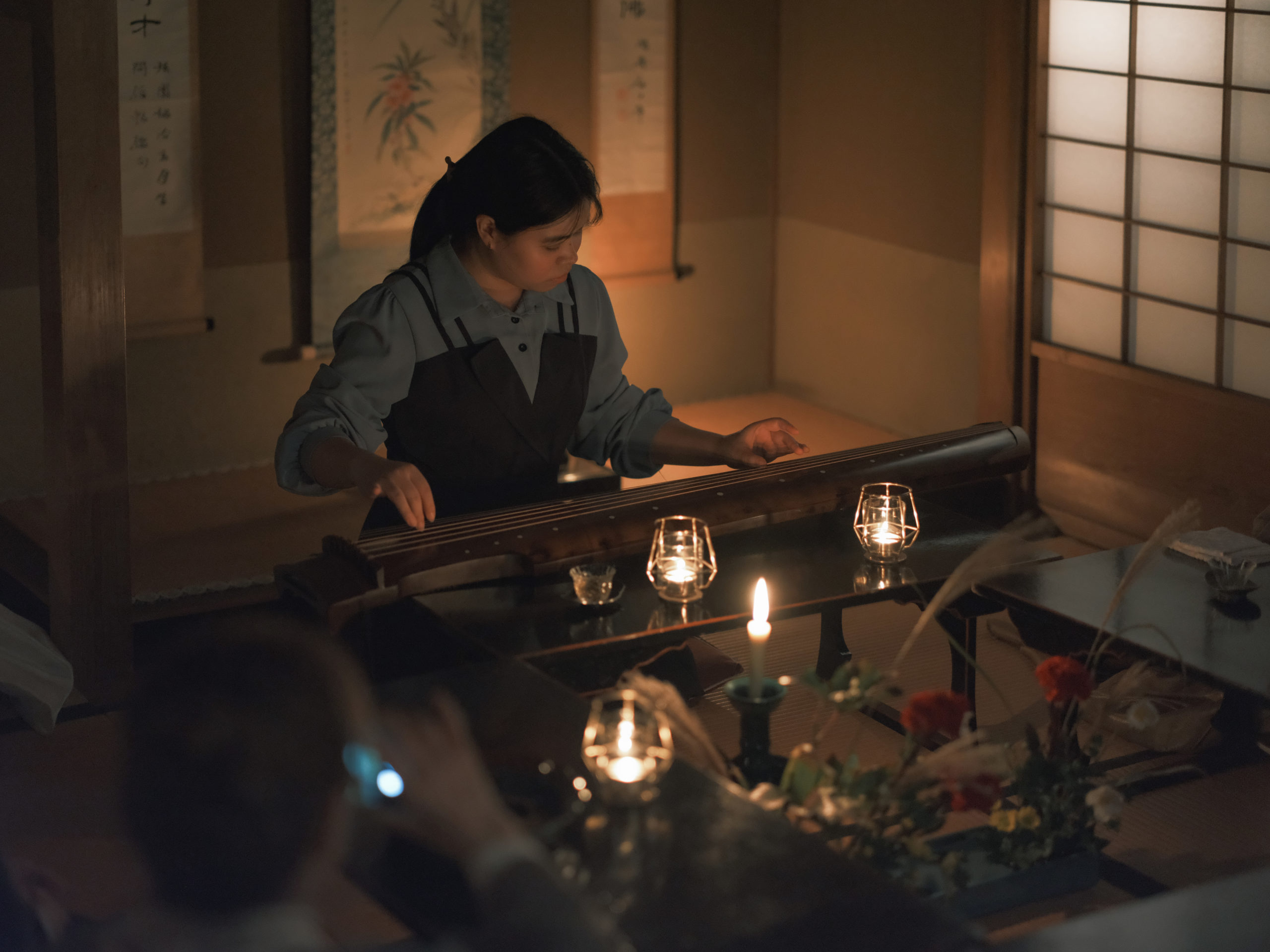 雅集 雅集というのは、風雅な事をするための集会です。 中国の晋代(317-420年)から、文人士大夫が集まって、詩を吟じたり、書画をかいたり、琴を弾いたり、お茶やお酒を飲んだりして、楽しい会話をしました。「天下一の行書」として名高い「蘭亭序」も当時の雅集の盛況ぶりを書いたものです。 雲岩琴社は3ヶ月一回のペースで雅集を開催しており、古琴だけではなく、中国伝統楽器の簫(しょう)や、西洋楽器のバイオリンなどができる方々も交えて、演奏と会話を楽しんでいます。 ご興味がある方、是非、お気軽にお問い合わせください。 前 次 2025.10.18 仲秋 鈴虫琴会 おかげさまで「鈴虫」を主役とした初めての夜咄琴会を無事に開催できました。 開催前は連日の雨で、主役の鈴虫たちが顔を出してくれるか不安でなっていました。しかし当日は幸いにも晴れ間に恵まれ、夜の帳が下りる頃には庭から賑やかな鈴虫の音が響き始めました。凛とした空気の中、鈴虫の澄んだ音色は古琴の調べと見事に調和し、その場を幽玄な世界へと誘ってくれました。 自然が奏でる天然の伴奏とともに琴を弾く時間は、この上なく贅沢で特別な体験となりました。ご参加いただいた皆様の心にも、あの夜の鈴虫たちの歌声が深く刻まれていれば幸いです。 前 次 2025.10.11 法眞寺公演 女流義太夫の竹本越若さんが主催の舞台『義太夫節と中国古典音楽を愉しむ』に参加させて頂きました。樋口一葉と関係深い法眞寺で開催。ステンドグラス煌めく本堂で、竹本越若さん、鶴澤賀寿・弥々の三方の出演の後、古琴の公演を行いました。 400年以上の歴史を持つこの寺院は、荘厳でありながら驚くほどモダンだったのです。伏し目の阿弥陀如来像、黄金色に輝く華鬘、灯火が揺らめく古き良き本堂……それでいて、色鮮やかなステンドグラスがその厳かな空間を無数の光の影へと砕き、世の塵さえもその中でキラキラと輝き、優しく変化させていました。 当日、あいにくの小雨で少し肌寒かったですが、その情景は『陽関三畳』に「渭城の朝雨、軽塵を潤す」の景色そのもので、驚くほど見事に重なり合っていました。 2025.5.27 成都国際古琴芸術週 日本分会場 「成都国際古琴芸術週」は2007年に始まり、世界初の無形文化遺産をテーマとした国際的な祭典です。成都が永久開催地となっており、いままで100カ国以上が参加し、世界の伝統技法や芸術を交流させる盛会となっています。 今回、雲岩琴社が招致を受け、日本分会場を設立いたしました。蜀派古琴の聖地・成都と海を越えた日本を繋ぎ、千年の歴史を誇る古琴の音色を響かせたことは、両国の文化交流における大きな一歩となりました。雲岩琴社は、この光栄を糧に、今後も世界の琴人との交流を深め、古琴文化の継承と発展に貢献してまいります。 前 次 前のページ 次のページ